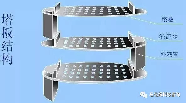 板式塔為逐級接觸式氣液傳質(zhì)設(shè)備,它主要由圓柱形殼體、塔板、溢流堰、降液管及受液盤等部件構(gòu)成。