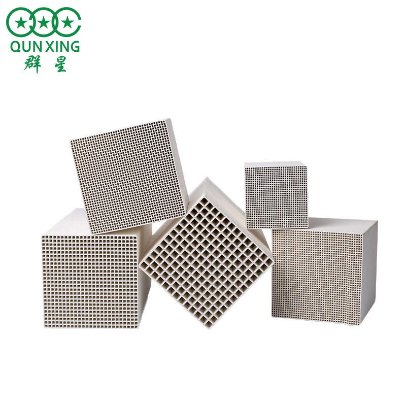 9.1mm的莫來(lái)石質(zhì)的可作為脫NOx催化劑載體的基材。草青石質(zhì)蜂窩陶瓷還可以作為柴油機(jī)碳煙過(guò)濾器,該過(guò)濾器是將蜂窩陶瓷的單元網(wǎng)眼兩端面相互交錯(cuò)封死,而利用多孔薄壁構(gòu)成的過(guò)濾器。當(dāng)氣孔率為35~55%平均孔徑控制在10~35um,其碳煙粒子捕集率可達(dá)40~95%。另外,蜂窩陶瓷還可以作為熱交換器用蓄熱體、熔融金屬過(guò)濾器、化工填料窯具及隔熱材料等。